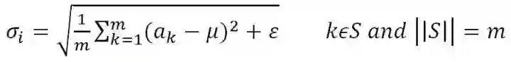 为根据均值和集合S中神经元各自激活值求出的激活值标准差: