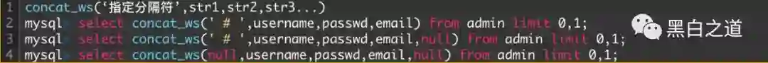 同样是连接多个字符串,但可以在开头指定分隔符,跟 concat()稍微不同,它会自动忽略中间的空值,只有分隔符为空,整体才返回空