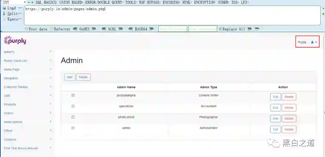 ‘Purply’ 后来发现这个用户才是真正的管理员,登陆以后的效果,如下