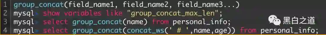 利用分组的方式连接所有字符串,通俗点儿讲,其实就是把某个字段下的所有数据全部连接成一个字符串,注意有长度限制,默认1024