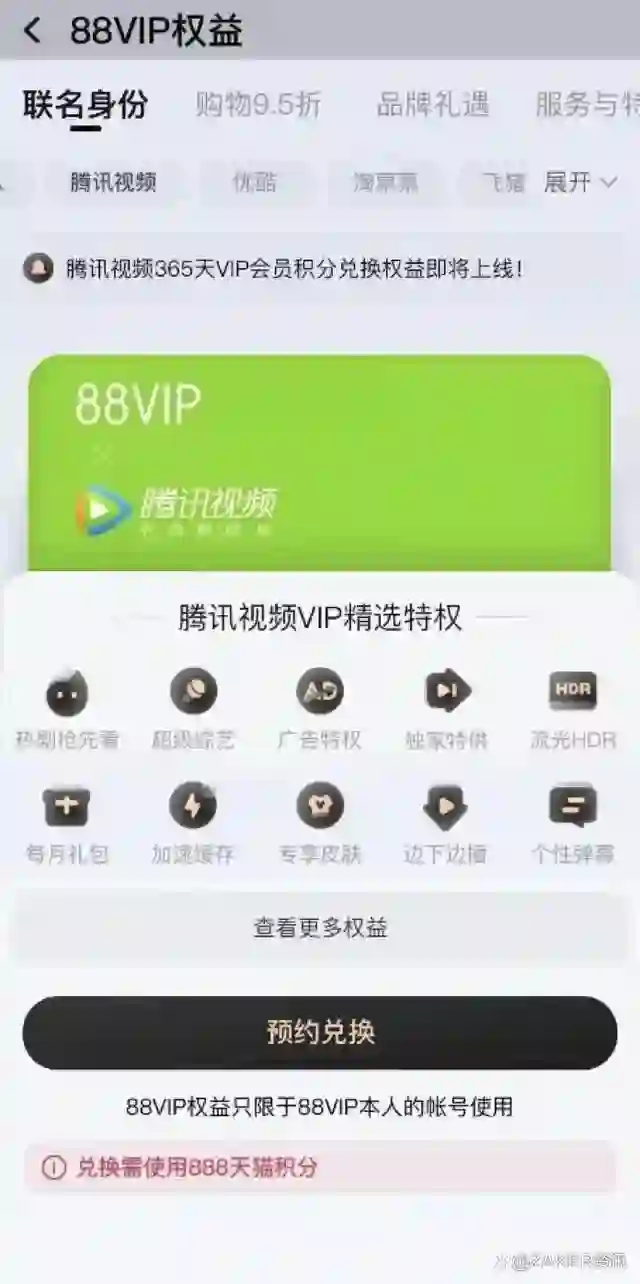 【阿里88VIP正内测接入腾讯视频会员】10月11日,有认证为阿里巴巴集团的员工在职场社交平台称,88VIP积分可以免费兑换腾讯视频会员,已经在内部灰度测试,预计双十一前上线。88VIP是淘宝和天猫的付费会员服务。(科创板日报)