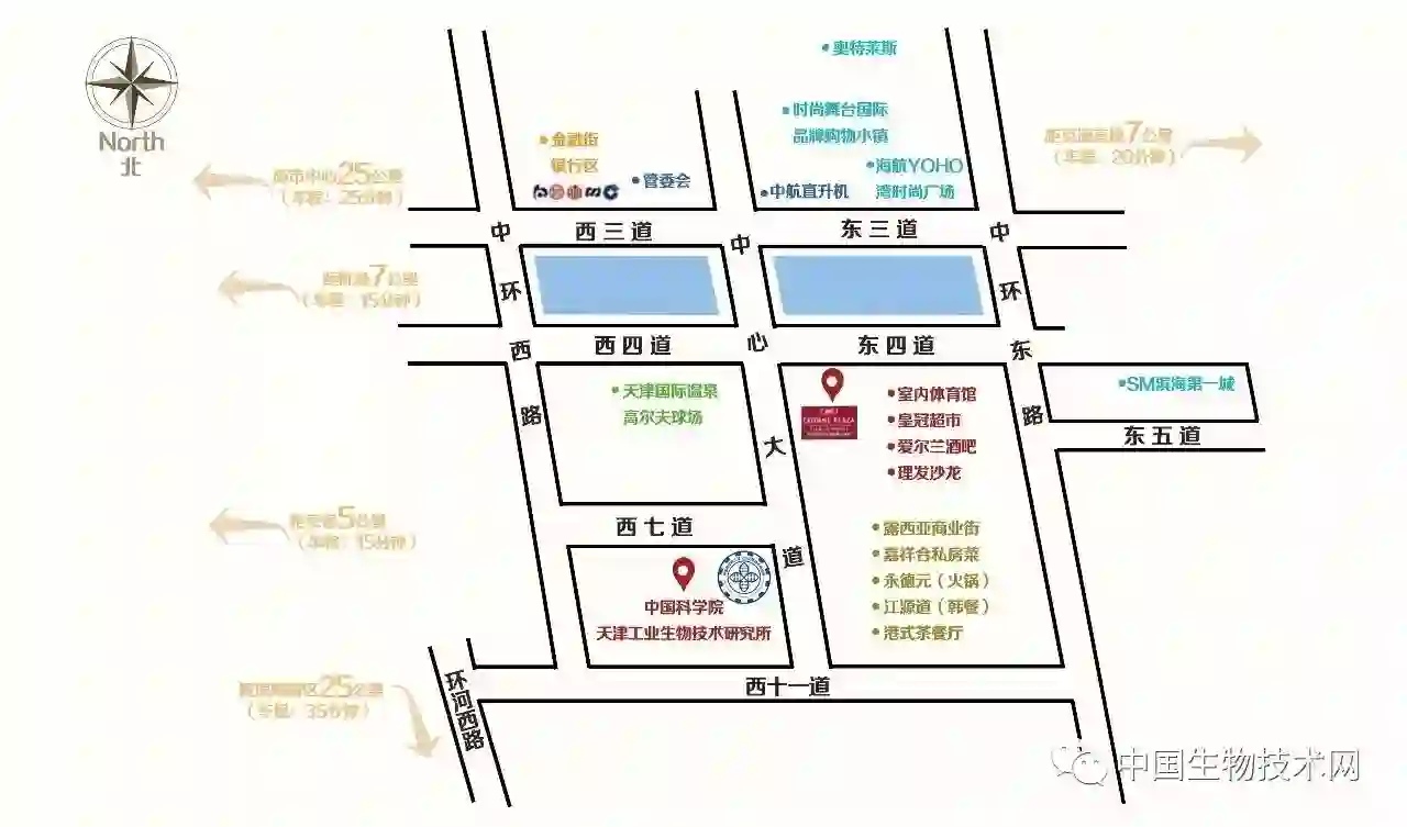 B、天津站——天津滨海圣光皇冠假日酒店/天津工业生物研究所