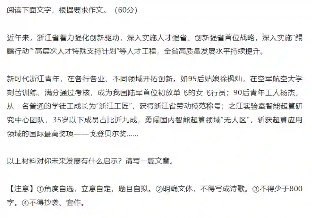 今年浙江省的考卷上提出“人才强省、创新强省”的战略,仔细品品,这是不是在号召浙江省的广大青年才俊留在浙江,共建美好家园。