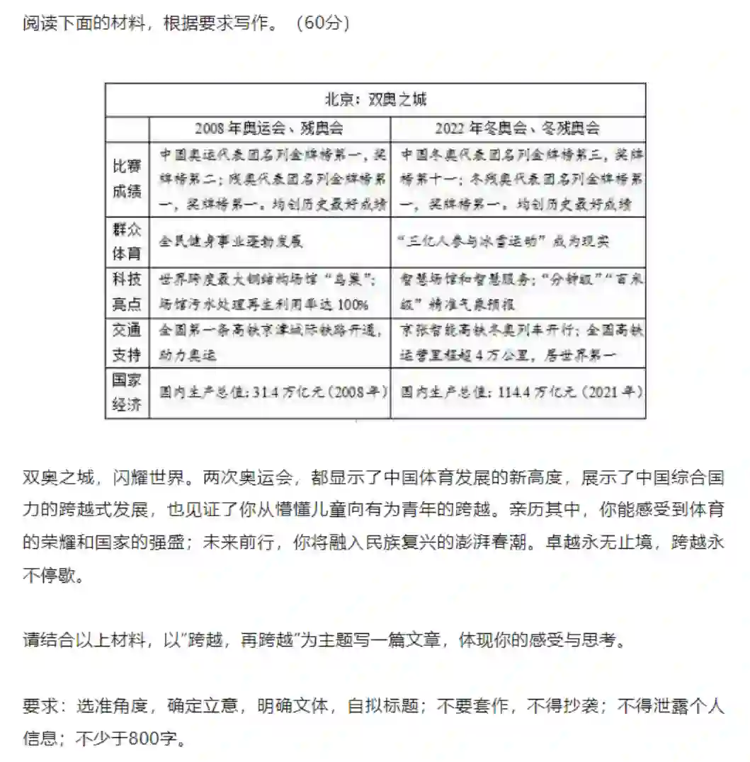 全国乙卷的题目是关于北京双奥之城的。