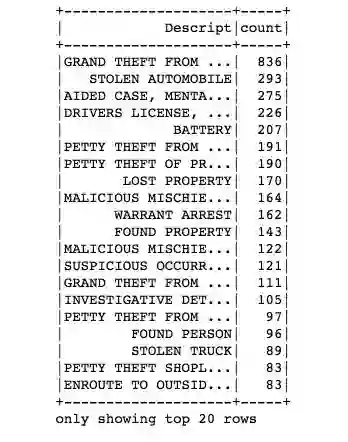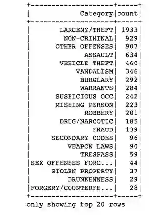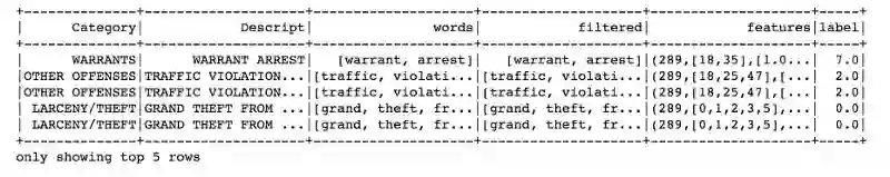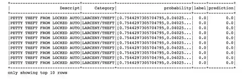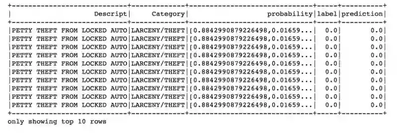 代码在Github上:https://github.com/susanli2016/Machine-Learning-with-Python/blob/master/SF_Crime_Text_Classification_PySpark.ipynb。