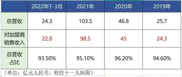 根据招股书信息,期内公司对加盟商的销售收入比例在95%上下浮动。