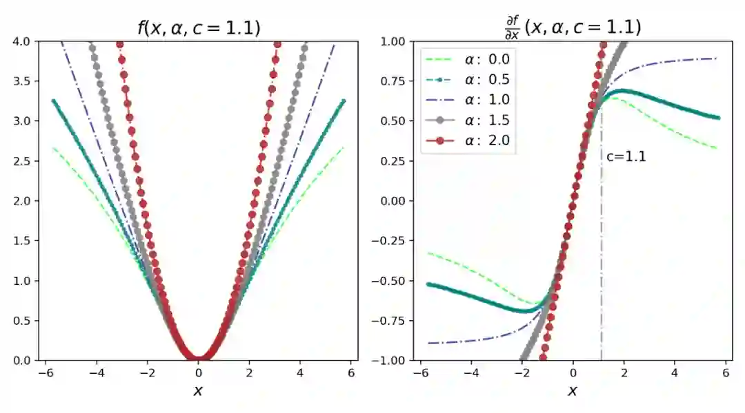 损失函数对x, α和c>0是平滑的,适用于基于梯度的优化。