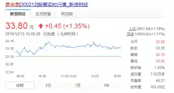 12月13日,易华录股价上涨: