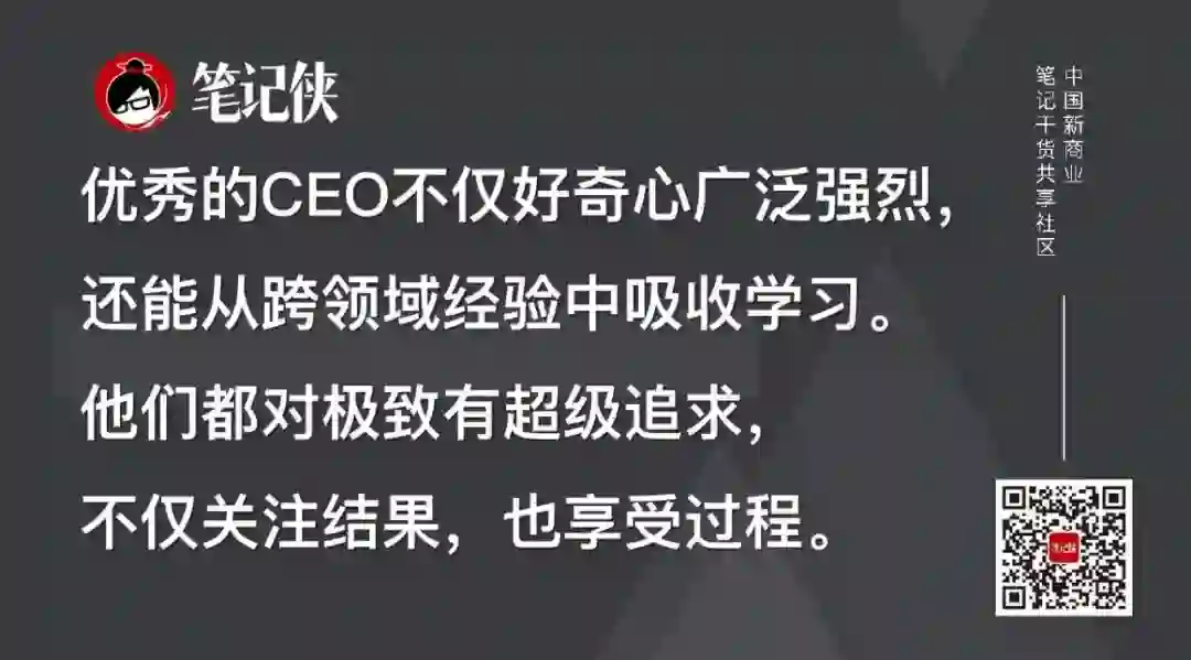 优秀的CEO都对极致有超级追求,不仅关注结果,也享受过程,对未知的求解无止境,对求解方法的高效化追求也无止境。