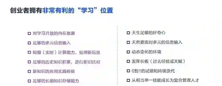 创业者处在所有职业种类中最佳的学习位置,其自身的学习能力决定了公司长跑中的高度和持久度。
