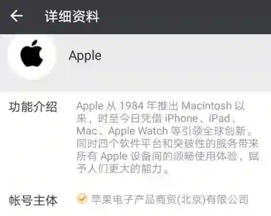 另外,苹果公司正式开通了微信公众号(Apple),主要提供产品购买、推荐、服务以及官方信息传达。