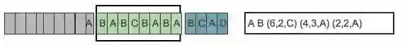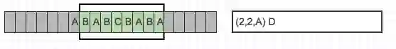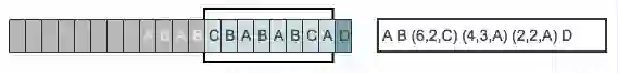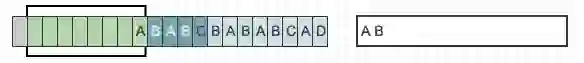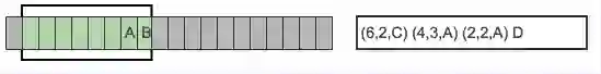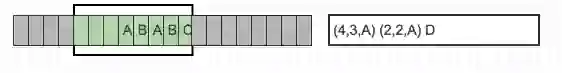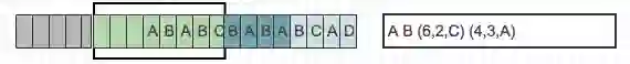 目前从前向缓冲区中可以和滑动窗口中可以匹配的最长短语就是(A,B),然后向前移动的时候再次遇到(A,B)的时候采用标记符代替。