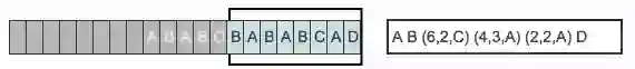 短语标记包含三部分信息:(滑动窗口中的偏移量(从匹配开始的地方计算)、匹配中的符号个数、匹配结束后的前向缓冲区中的第一个符号)。