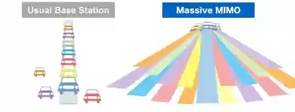 大规模天线阵列(Massive MIMO)是指一根天线有很多的天线头。每个天线头可以与移动设备进行独立的输入输出信号通信,这相当于为基站和终端之间建立了众多通道,天线头越多,通信信道就越多。在5G时代,天线可以拥有256个天线头,远远多于4G时代MIMO的16个天线头。这就大大提升了单位网络面积能够支撑的设备容量。