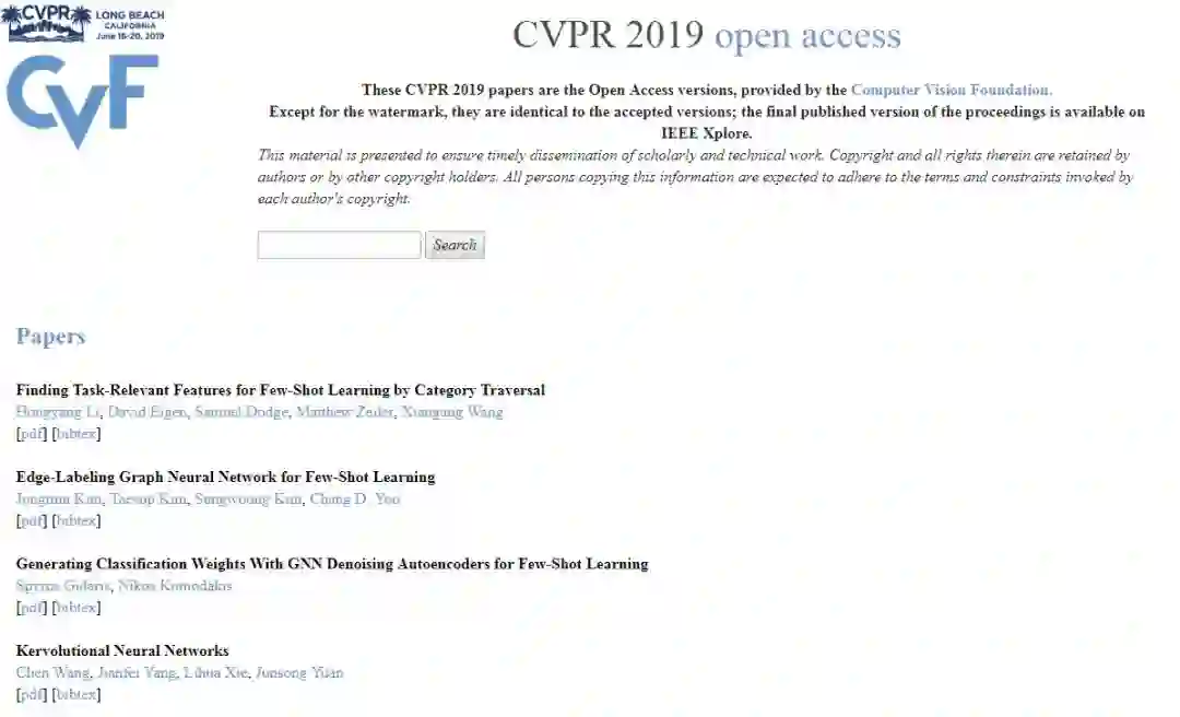 官网也放出了今年CVPR 2019 proceedings论文列表,大家可以下载查看。链接: