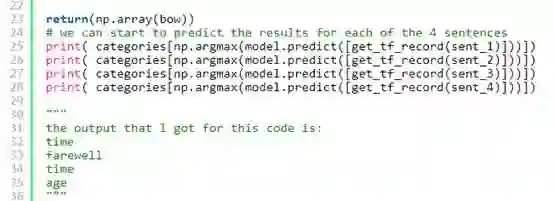 现在我们可以通过以下的代码来测试我们的神经网络文本分类器python模型了。