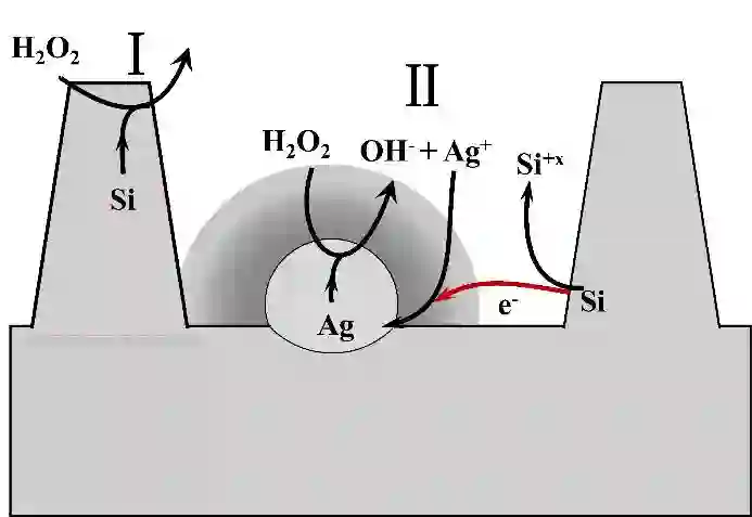 图4 两步法金属辅助化学腐蚀过程原理图。