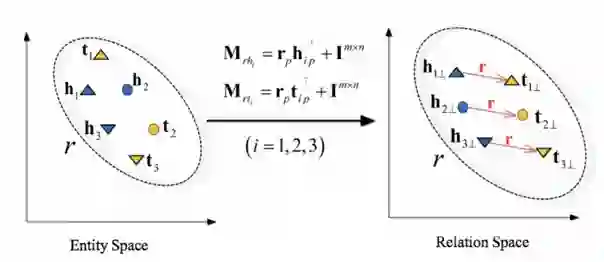 为解决这个问题,人们进一步提出了TransD算法。TransD的核心思想在于用一个实体相关的向量与一个关系相关的向量的外积来动态的求解出映射矩阵。通过动态计算映射矩阵,TransD不仅可以显著降低参数数量,而且增强了全局捕捉能力。