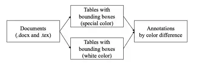 为解决对标准开放域表格基准数据集的需求,该研究提出一种新颖的弱监督方法,可自动创建 TableBank 数据集,TableBank 要比现有的表格分析人工标注数据集大几个量级。与传统弱监督训练集不同,该研究提出的弱监督方法可以同时获得大规模和高质量的训练数据。现在,网络上有大量电子文档,如 Word(.docx)和 Latex(.tex)文件。这些在线文档的源代码中包含表格的 mark-up tag。直观地讲,借助每个文档中的标记语言,研究者可以通过添加边框来操控这些源代码。就 Word 文档而言,内部 Office XML 代码可以在标注每一表格边界的地方进行修改。就 Latex 文档而言,tex 代码同样可以在标注表格边界的地方进行修改。这种方式可以为多个不同域创建高质量的标注数据,如商业文件、官方名录和科研论文等,这些数据对大规模表格分析任务大有裨益。