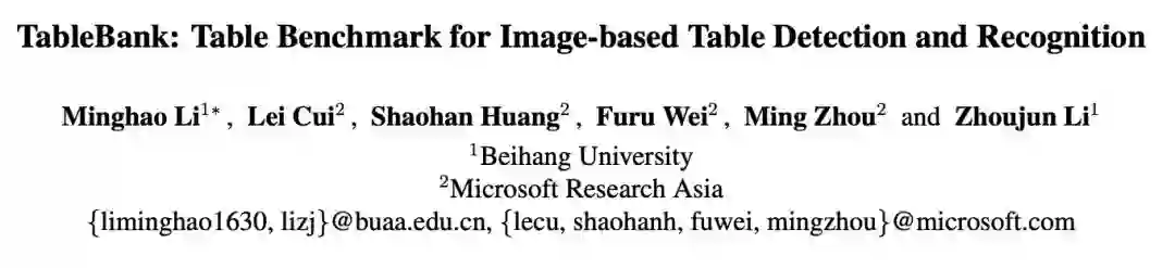 论文:TableBank: Table Benchmark for Image-based Table Detection and Recognition