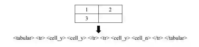 图 4:表格转 HTML 示例,其中 <cell_y> 表示含有文本的单元格,<cell_n> 表示没有文本的单元格。