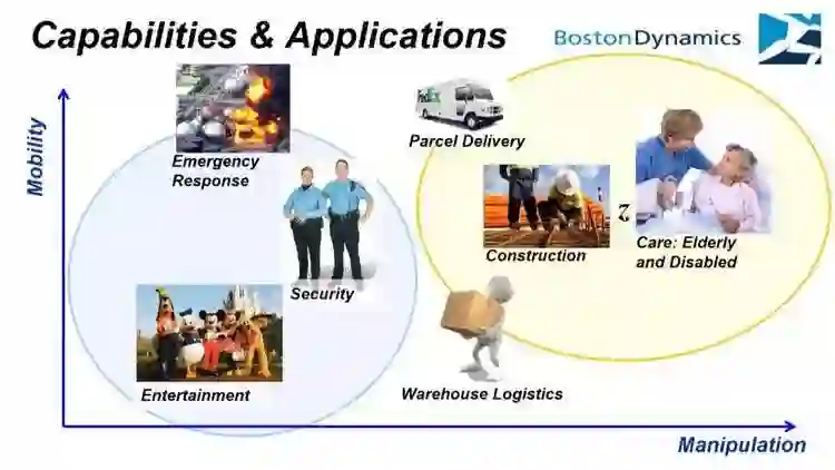 在 CeBIT 会议上,Raibert 就列举了自家机器人在使用场景和技术突破上所遇到挑战。娱乐功能、应急响应、安保,是波士顿机器人短期内聚焦的应用场景,仓储物流、配送以及工程建设、看护服务是公司将着眼于的中期和长期目标。
