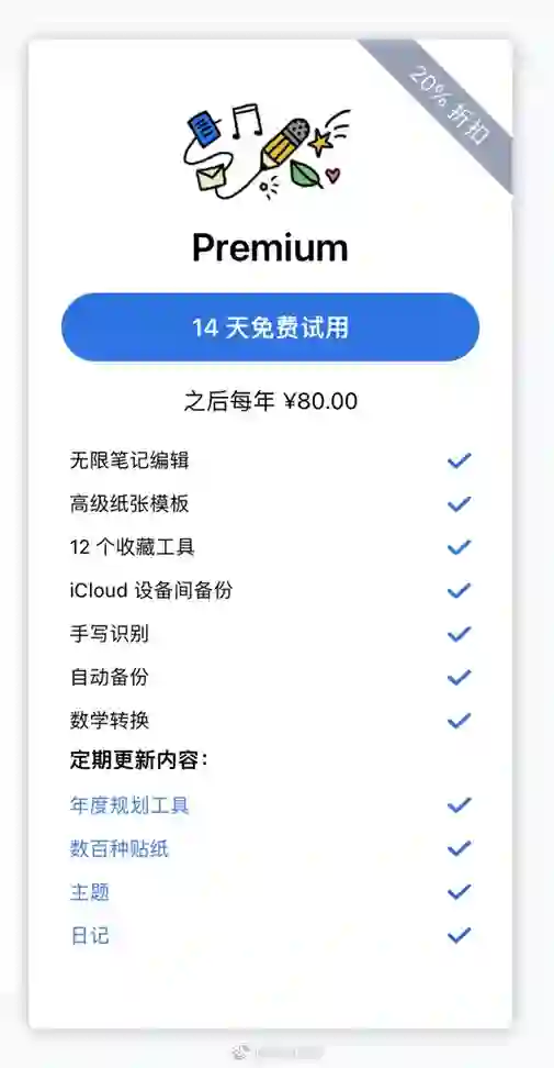 更新版本说明在 2021 年 11 月 1 日转订阅制之前买断的用户可以终身使用现有功能和之前在应用中购买的任何内容,包括无限次编辑、iCloud 同步等,以及之前通过 Notability Shop 购买的任何功能或内容。而新用户则仅支持 80 元/年的订阅制享受完整服务及定期更新内容。