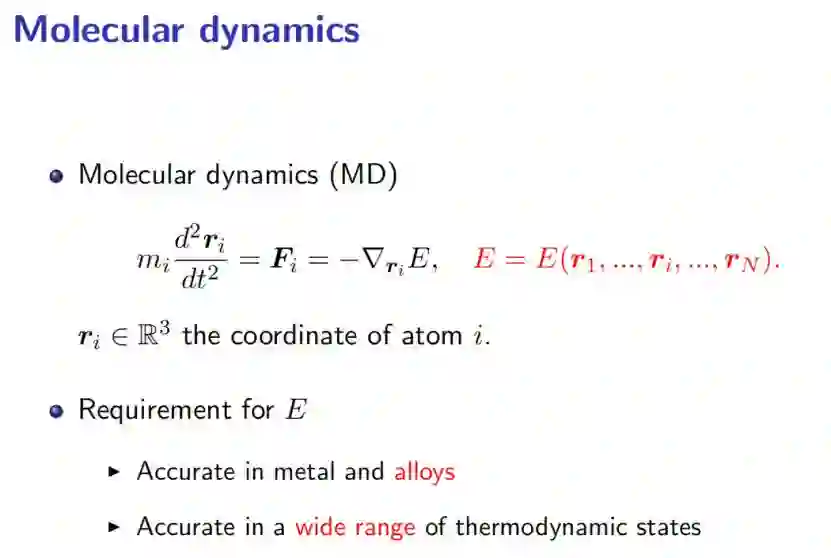 首先什么是分子模拟,概念非常简单,假设这个世界由原子构成,我们将每一个原子看作一个质点,然后依据牛顿运动第二定律,给定初值以后就能把这个方程解出来,从而获知所有原子在任意时刻的坐标,这就是分子模拟在做的事。但是大家如果看过《三体》,马上就会意识到这个方程要想精确求解,只能针对两原子体系,任意一个多原子体系都无法在无穷长的时间内把这个方程精确地解出来,或者说你的初值误差就会变得非常大,导致你的解完全不靠谱。