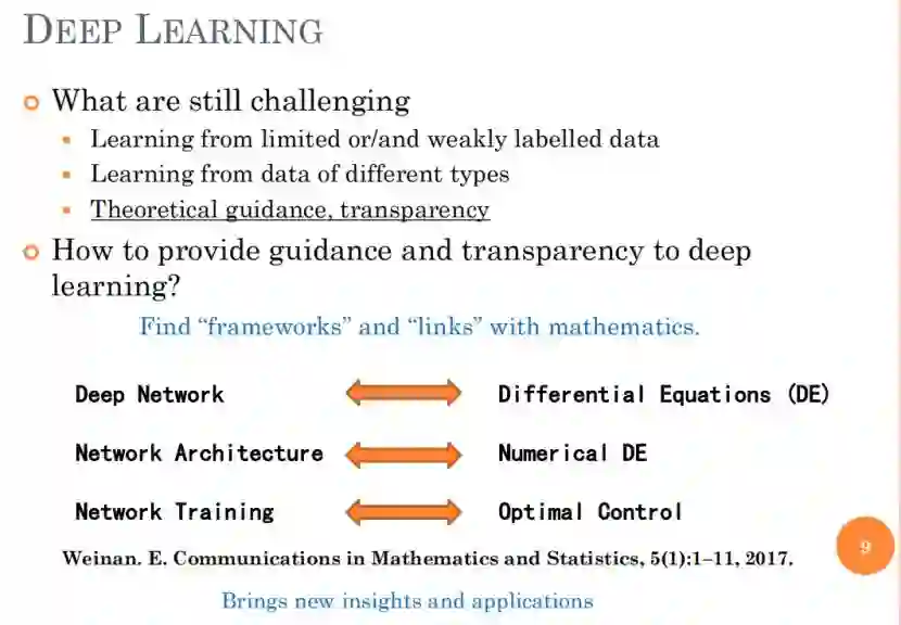 这个桥梁一旦搭起,基本上就可知道从数学中的哪个领域出发去理解深度学习。鉴于此二者近年来相对独立的发展态势,彼此有很多思考可供借鉴,拓宽思路之余也会发现很多有趣的新应用。