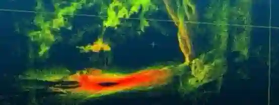 所谓激光,就是激发态的原子(黑色),受到某一外来光子(红色)的作用,而且外来光子的能量恰好满足 hv=E2-E1,原子就有可能从激发态 E2 跃迁至低能态 E1,同时放出一个与外来光子具有完全相同状态的光子(另外一个红色粒子)。这一过程被称为受激辐射。 这就是激光产生的第一条件:受激辐射占主导地位。