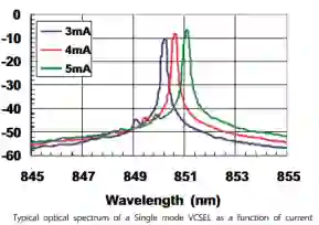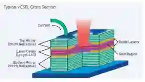 VCSEL 称为垂直腔表面发射激光器。VCSEL 从垂直衬底的面发射激光,因此很容易通过平面工艺实现大规模发光阵列;发射激光的束散角较小,光斑近似于圆形;对于光学系统的要求低;工艺与 LED 兼容,有利于大规模制造,降低成本。