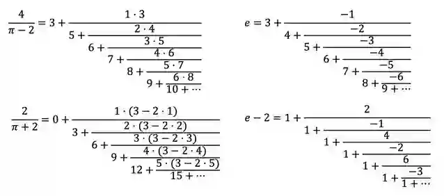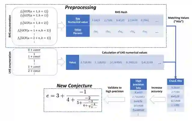 在 Ramanujan Machine 这项研究中,研究人员建立了一种新的机制,用于学习常数和一系列新猜想之间的关系。由于机制可以以许多种规律公式表示,研究人员提出了一种潜在的等式——广义连续分数: