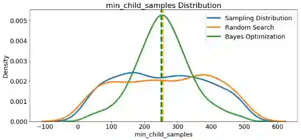 在大多数情况下(subsampleforbin除外),贝叶斯优化搜索倾向于在超参数值附近集中(放置更多概率),从而产生交叉验证中的最低损失。这显示了使用贝叶斯方法进行超参数调整的基本思想:花费更多时间来评估有希望的超参数值。