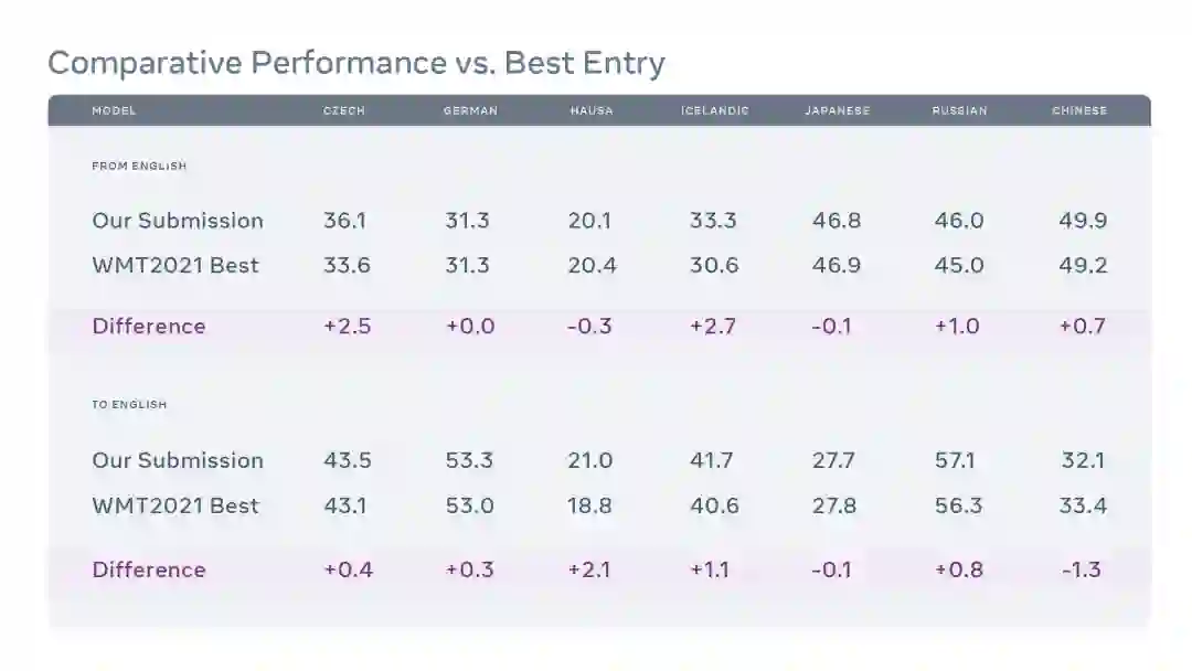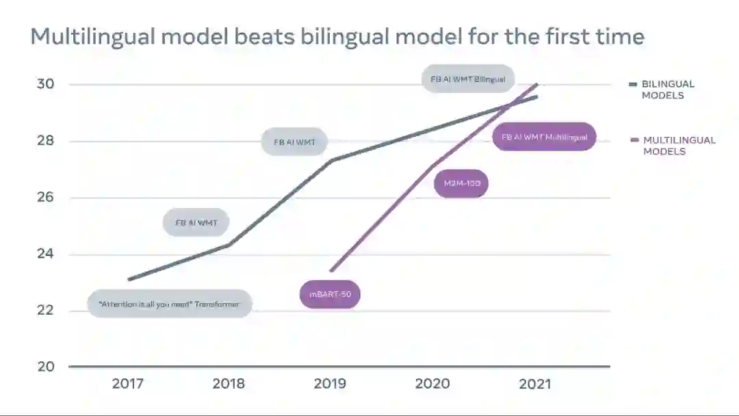 我们的模型获奖是 MT 领域一个令人兴奋的转折点,因为它表明,借助大规模数据挖掘、模型容量扩展方面的 最新进展 和更有效的基础设施,多语言模型有可能在高资源和低资源语言上都取得良好的效果。它使我们离构建一个通用的翻译器更近了一步,这个翻译器可以连接全世界所有语言的人,而不管翻译数据有多少。