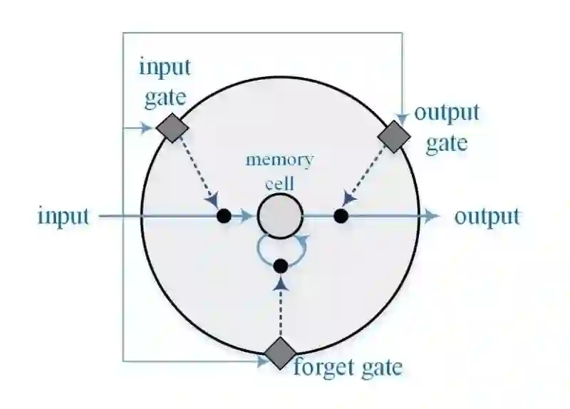 LSTM 是 RNN 的一种扩展。LSTM 中,每个神经元除了有反馈环这一储存信息的机制,还有用于控制神经元信息通过的“遗忘门”、“输入层门”及“输出层门”,防止不相关的信息造成的扰动。