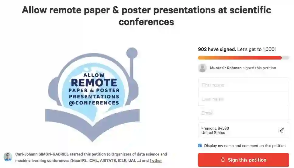 Bengio支持,关于允许机器学习学术会议进行远程论文和海报展示的请愿书