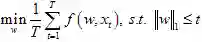其中T表示观测样本数量,t表示某一观测样本的序号,函数f为输入为xt,参数为w的目标函数,‖.‖1表示L1正则约束。一般称第一个优化目标(公式1)为有限制条件的形式化,第二个目标(公式2)为无限制条件的形式化。L1正则约束的表述虽然简单,但对上述的两个目标函数的直接优化都是非凸优化,不易通过直接对梯度进行优化的方式获得结果。关于加入L1正则项后的优化方法有很多讨论,这里我主要介绍两种比较易于实现的方法,以供大家选择。