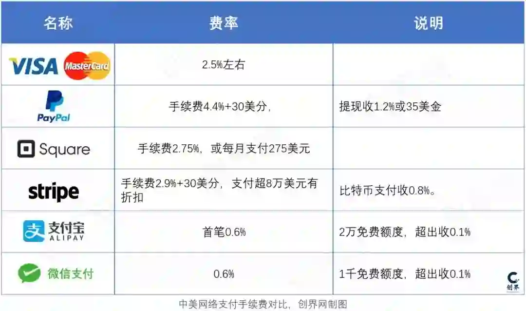美国第三方网络支付公司,类似支付宝和微信支付,比如Paypal,一笔交易的标准利率是4.4%加30美分。提现还要收取1.2% 或者 35美金的提现手续费用。