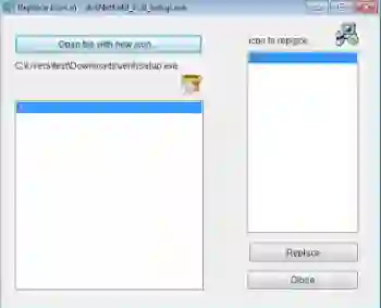 要更改安装文件的图标,请展开图标文件夹,然后右键单击第一个资源。然后选择“替换图标...”。将出现一个窗口: