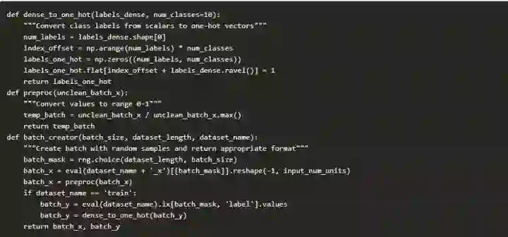 我们来定义我们的神经网络架构。我们定义了一个三层神经网络:输入,隐藏和输出。输入和输出中神经元的数量是固定的,因为输入的是28x28图像,输出的是10x1向量。我们隐藏层中有500个神经元。这个数字可以根据你的需要而有所不同。