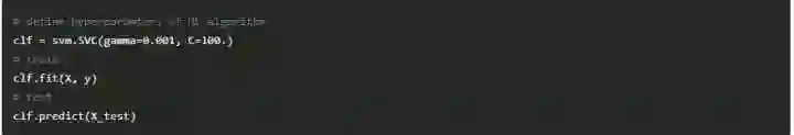 每个库都有自己的“实施细节”,即按照其编码模式编写的一种方法。例如,在执行scikit-learn时,首先创建所需算法的对象,然后在训练集上构建一个模型,并对测试集进行预测。例如: