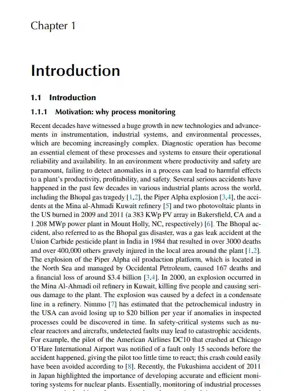 利用高级数据驱动和深度学习方法,结合单变量和传统多变量技术的优势,提高其性能,拓宽其实际应用范围,解决了过程监控中的多变量挑战。本书继续融合了浅层学习方法的理想属性——如单类支持向量机、k近邻和无监督深度学习方法——以开发更复杂和有效的监控技术。最后,开发的方法应用于监测许多过程,如废水处理厂,自主机器人和车辆的驾驶环境中的障碍检测,机器人群,化学过程(连续搅拌槽反应器,塞流反应器和蒸馏塔),臭氧污染,道路交通拥堵,还有太阳能光伏系统。