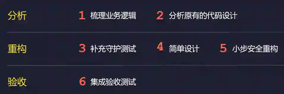 首先需要去梳理原有的业务逻辑,这一点非常重要,因为很多遗留系统的业务和逻辑都是有一些缺失的,所以第一步要去梳理业务逻辑。第二个是分析原有的代码设计,从中识别一些代码设计的问题。第三个,开始动手做安全重构时,建议先补充守护测试,做一层简单的防护网。