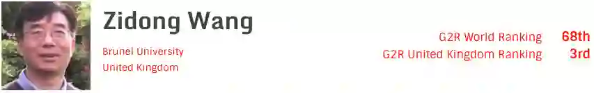 7、Zidong Wang (王子栋)现任布鲁奈尔大学信息计算与数学院教授,曾获教育部科技进步二等奖2项,三等奖1项。1996年获得德国洪堡基金,1998年获得日本科学促进会基金,2002年获得香港大学威廉蒙基金。