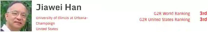 1、h-index 最高的华人依然是伊利诺伊大学的Jiawei Han(韩家炜)教授,h-index为174(2019年为164,2018为158)。他是美国伊利诺伊大学香槟分校计算机系教授,IEEE和ACM会士,2009 年获得了麦克道尔奖,这是 IEEE 颁发的最高技术奖。在数据挖掘领域,韩家炜教授认为要想将现有的无结构的大数据变成有用的知识,首先要做的就是将数据结构化,因为杰出贡献而被冠以「数据挖掘领头人」。他于2011年发表的「Data mining: concepts and techniques」,已经有47546次引用。
