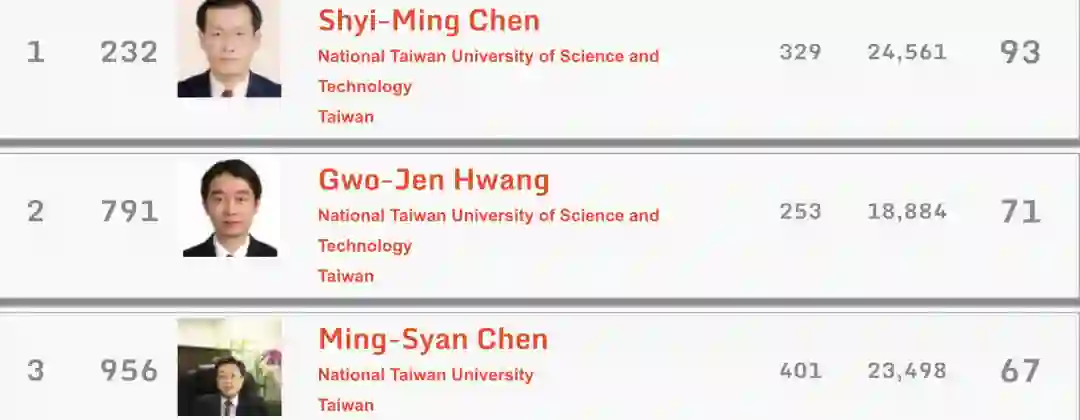 需要指出,Guide2Research 网站为不完全统计,有很多学者的数据没有收录,尤其是中国大陆的学者,同时学者的所在机构或有一定滞后,可以联系 Guide2Research 更新。