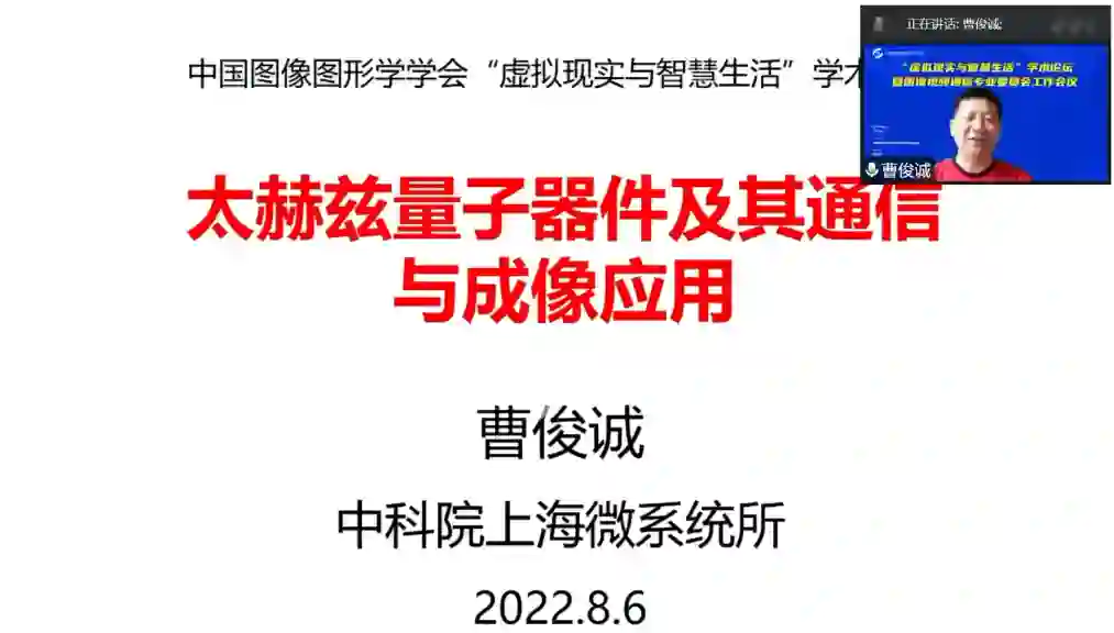 来自中科院上海微系统与信息技术研究所的曹俊诚研究员作《太赫兹量子器件及其通信与成像应用》的学术报告。报告重点报道了THz辐射与低维半导体相互作用物理,THz 量子级联激光器和 THz 量子阱探测器材料生长,器件研制以及 THz 通信与成像等应用领域的研究进展。