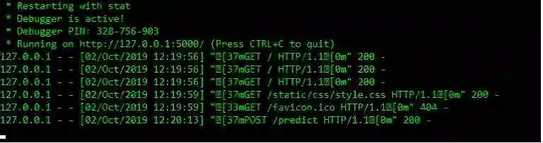 import numpy as npfrom flask import Flask, request, jsonify, render_templateimport pickleapp = Flask(__name__)model = pickle.load(open('model.pkl', 'rb'))@app.route('/')def home():return render_template('index.html')@app.route('/predict',methods=['POST'])def predict():int_features = [int(x) for x in request.form.values()]final_features = [np.array(int_features)]prediction = model.predict(final_features)output = round(prediction[0], 2)return render_template('index.html', prediction_text='Sales shouldbe $ {}'.format(output))@app.route('/results',methods=['POST'])def results():data = request.get_json(force=True)prediction = model.predict([np.array(list(data.values()))])output = prediction[0]return jsonify(output)if __name__ == "__main__":app.run(debug=True)