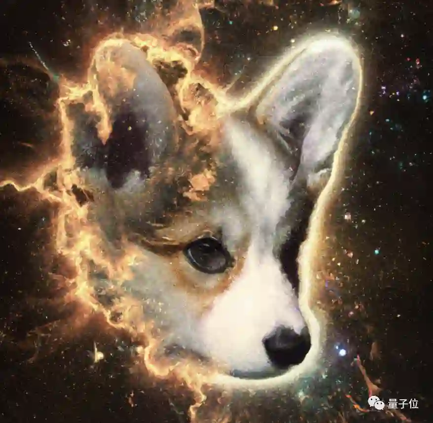 这是DALL·E 2在“星云爆炸状柯基头”这一提示下的创作出来的画作: