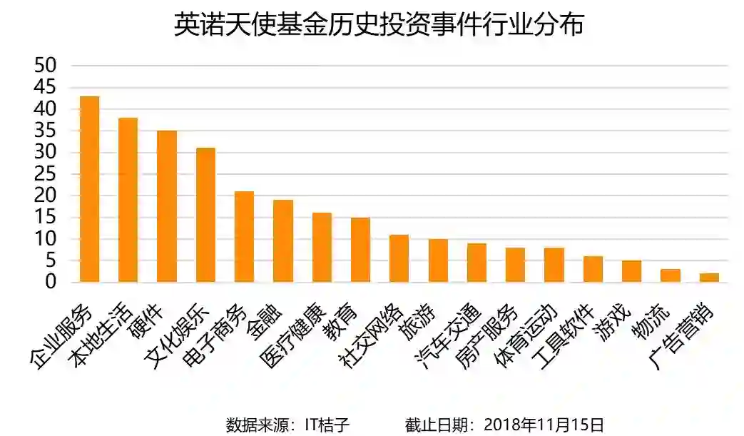IT 桔子数据显示,截止到 2018 年 11 月,英诺天使基金在本年度共计参与 75 起投资事件。从行业分布来看,2018 年英诺天使基金更加关注消费生活、大数据与企业服务、人工智能等领域。